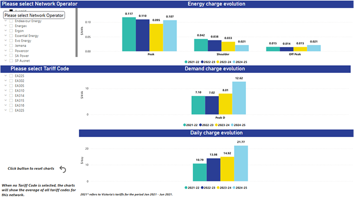 This dynamic tool shows the different rates for each Tariff Code within each network, from 2021 to 2025.